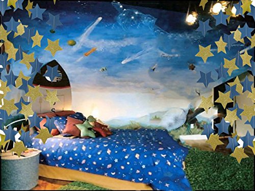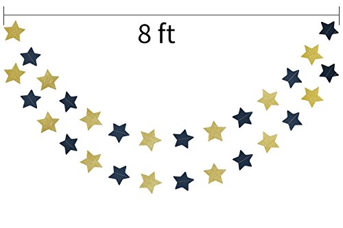 -. Feature : Outer Space Decorations Package includes: 2 pcs Navy Blue Glitter Gold Star garland/Paper Garlands.Each string is about 8 feet long.Each Star diameter is about 4 inch.Totally 16pcs stars for each string. Choose the style you prefer to best show the theme and atmosphere of your party. / Star Paper Garland Perfect for independence day decoration wedding, parties, children birthday, nursery christening, Baby shower, Kitchen tea, Nursery decorations or any other celebration. / Ideal to use as a backdrop or as an alternative to bunting or banners / Unroll & unwrap garlands carefully. Due to delicate nature of thread, can tangle. This item is for adult use and is not a toy. Please use with responsibility, as this is not a toy. Never place paper garland near a lit candle or flame. Remove banner P.R.Ior to use of candles and/or consumption. Buyer assumes all risk. / An economical way to light up your party or for daily life decoration for room. Can be used again and again.
