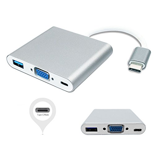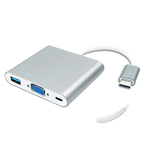 Type-C Multiport Hub Adapter, 3-in-1 USB-C to VGA USB3.0 Type-C Female Adapter with Charging & Video Converter for Apple MacBook,ChromeBook Pixel Projector TV and More Type-c Devices