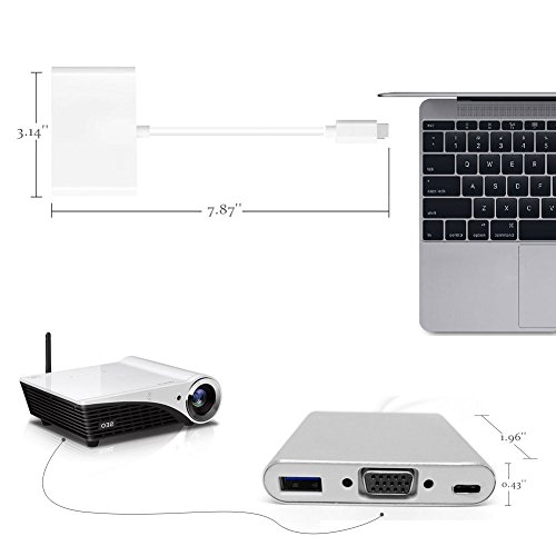 This 3 in 1 USB 3.1 Type-C(DP mode) to VGA+USB3.0+Type-C/F adapter is a great companion for your 12 inch Macbook or Google New Chromebook Pixel