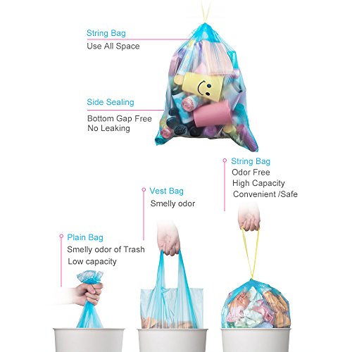 Convenient and Safe: Drawstring trash bags provide much convenience while packaging your garbage. No leaking and no worry to stain your hands with drawstrings.