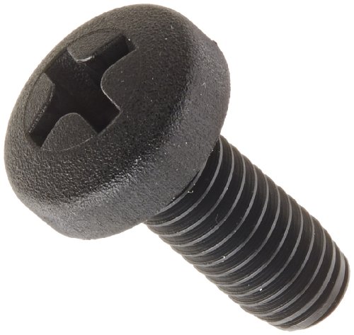 Nylon 6/6 Pan Head Machine Screw, Black, #3 Phillips Drive, M6-1 Thread Size, 25 mm Length, Fully Threaded, USA Made (Pack of 100)