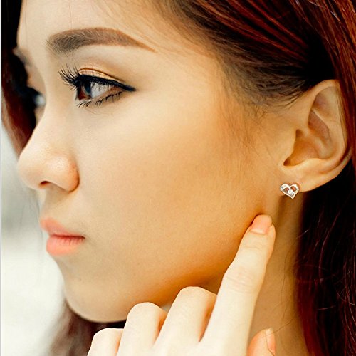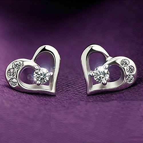 - Title : Acxico 925 Sterling Silver Hollow out Heart Shape with Diamonds Inlaid Stud Earrings