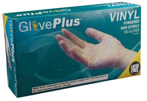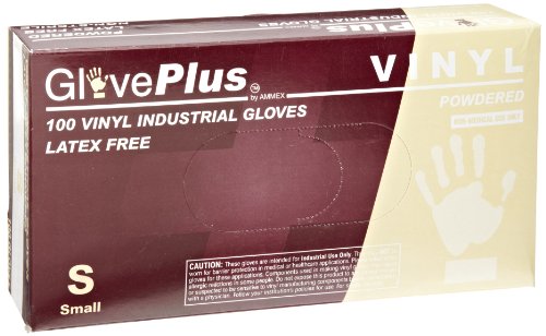 Gloveplus IV Powdered Vinyl Disposable Gloves are industrial grade, made from PVC vinyl, so those with latex allergies can rest assured because they are latex free. These select quality vinyl gloves feature excellent sensitivity in the palm and fingertips, as well as a smooth fit and feel. the glove is powdered for ease and comfort of wearing and removing. Vinyl gloves are more cost effective than latex or nitrile while offering the appropriate tear and puncture resistance for industries where they are used. Vinyl gloves are popular in janitorial and sanitation, industry, beauty, food service and food processing industries. Around the home, these vinyl gloves can be used indoors or outdoors, in the kitchen or garage for cleaning, home maintenance, painting, yard work, pet care, arts and crafts. The best industrial grade vinyl gloves for the price on Amazon prime.