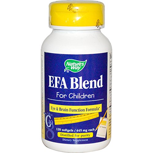 Eye & Brain Function Formula Distilled for Purity Dietary Supplement DHA, GLA & Vitamin E DHA and related omega-3 essential fatty acids are major elements of both eye and brain tissue. Nature's Way EFA Blend for Children combines the researched levels of these key essential fatty acids to support eye and brain function. Suggested Use Recommendation: Children over 5: Take 2 softgels each morning and evening with food or drink. For more intensive use, take 4 softgels each morning and evening with food or drink for up to 12 weeks. Other Ingredients Gelatin (softgel), glycerin, purified water Warnings Fr