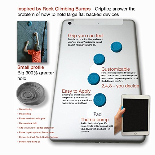 GRIPTIPZ: Grey - Ergonomic, Customizable Grips for iPad, Surface, Nook, Kindle and Large Format Phones