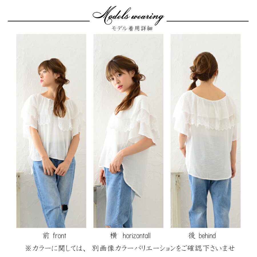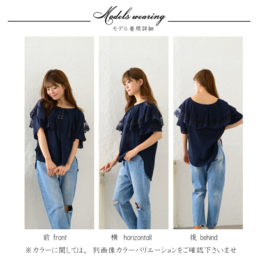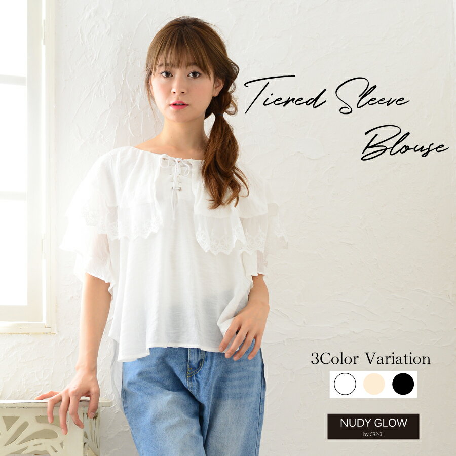 しわになりにくい素材が特徴です。贅沢なティアード袖でレースもちらりと見えるのがポイント。