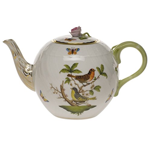-. Title : Herend Rothschild Bird Tea Pot With Rose