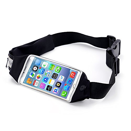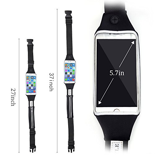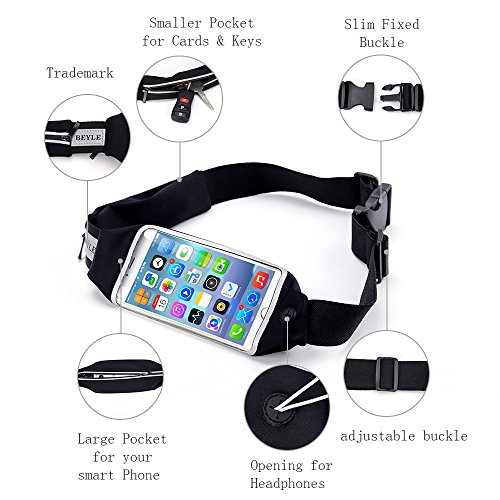 2:EXPANDABLE: Running Waist Pack Zippered water resistant expandable pouch holds smart phone, keys, money, wallet, inhaler, pills, passport, credit cards and other essential items. This running belt is light weight and compact but has the ability to expand to fit large phones like the iphone 6, 7 Plus or Samsung phones in their cases. Running belt with 2 great pockets, if you carrying your phone and keys together in a pocket, you can expect damages of your phone's screen!