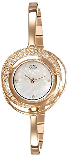 Jewelry Inspired Gold Stainless Steel watch with a round Mother of Pearl dial