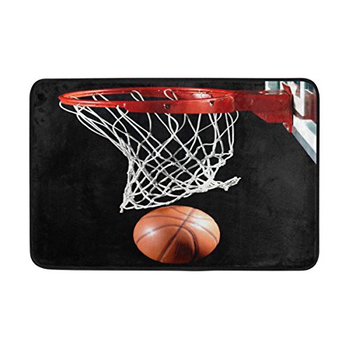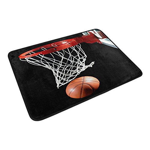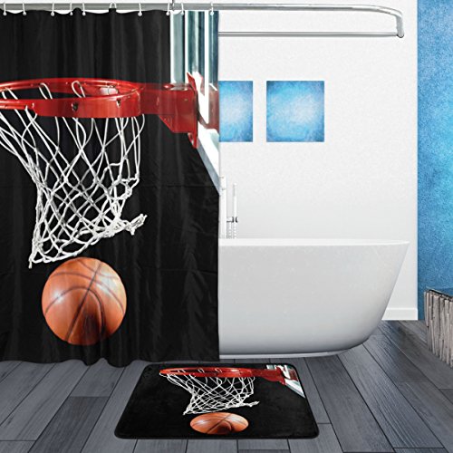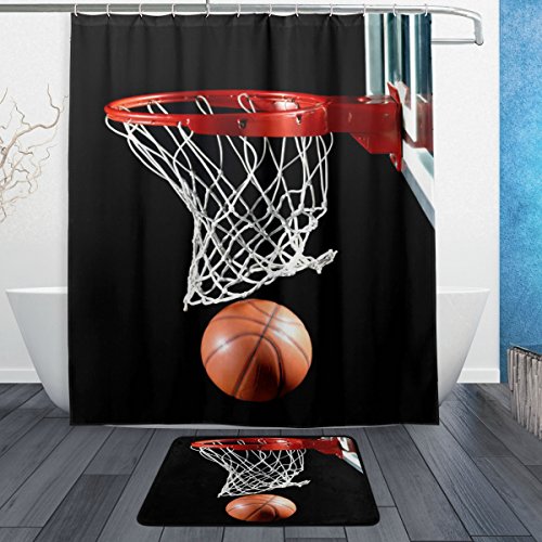 ALAZA Set of 2 Sports 60 X 72 Inches Shower Curtain and Mat Set, Basketball Waterproof Fabric Bathroom Curtain and Rug Set with Hooks