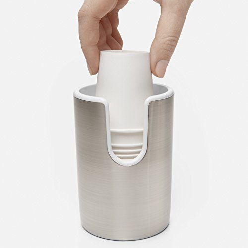 The OXO good grips paper rinse cup dispenser offers convenient, countertop cup access in a single storage place. The dispenser has a weighted base for extra stability, dispenses cups one at a time and can hold up to forty 3 oz. Disposable paper cups.