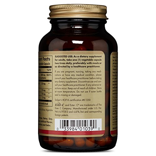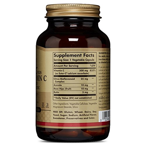 Ester-C plus is exclusively formulated by solgar and provides a patented, ph neutral (non acidic) vitamin C that is gentle on the stomach. The vitamin C metabolites in ester-c positively impact the uptake and retention of vitamin C in cells, providing additional benefits. Unique calcium ascorbate metabolite complex. Incorporates natural bioflavonoids and acerola berry along with rose hips fruit powder yielding beneficial antioxidant support and active immune system support. Suitable for vegetarians.Feature