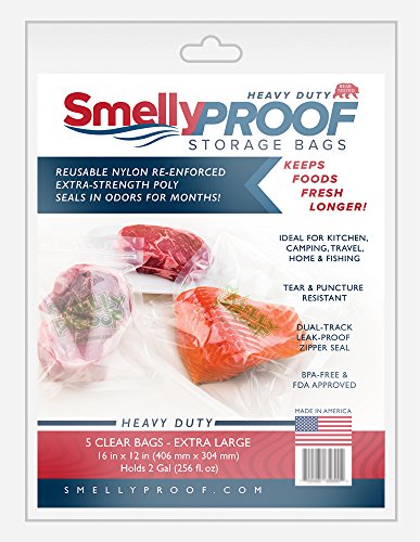 Smelly Proof SP-HXLHD5 Double Track Zipper HeavyDuty Reusable Storage Bag, Clear, XL 12" x 16", 5 Pack