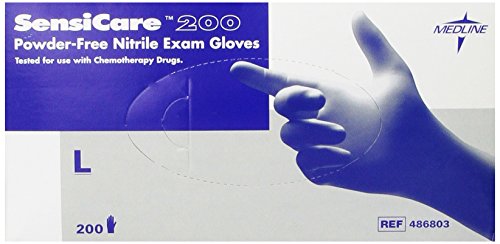 Medline Sensicare 200 Non-Sterile Powder-Free Latex-Free Nitrile Exam Gloves, Large, 200 Count
