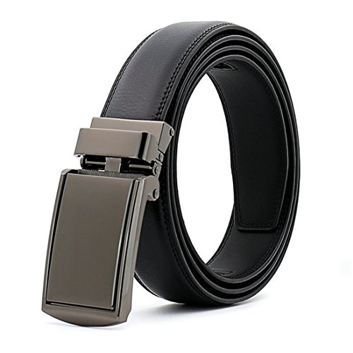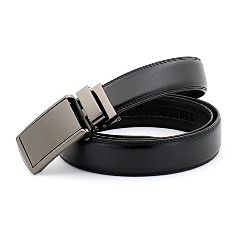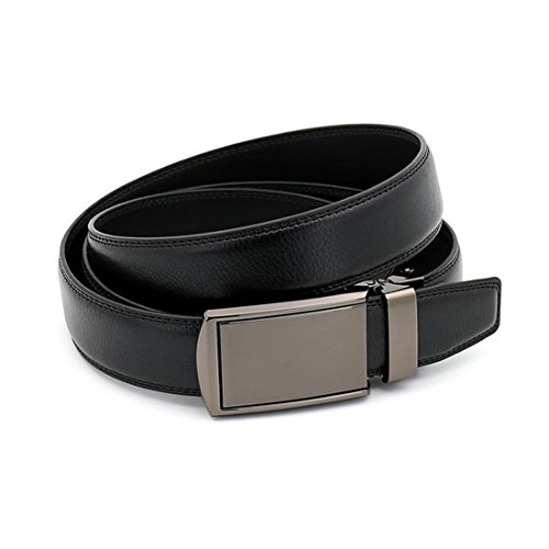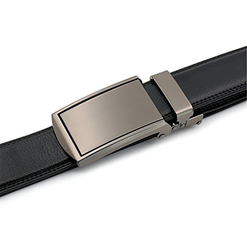 Belt Features: (a)The belt is sleek and clean, and provides a perfect fit for everyone. (b)plz buy one size larger than your waist,oversize for special demand (c)The tip of the belt inserts into the ratchet belt buckle, where a locking mechanism holds the belt in place from the back. (d)To remove the belt, just press the small metal lever on the bottom of the buckle, and the belt slides out of the buckle.