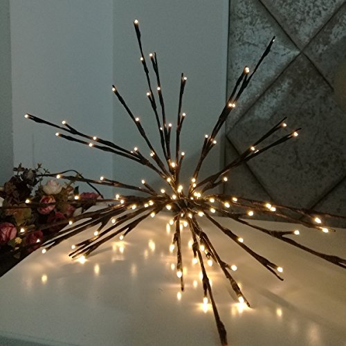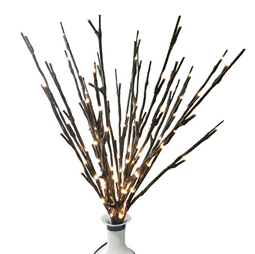 Babali Lighted Twig Branches 20 Inches 100 Led Battery and Electric / Corded Dual Power Brown Wrapped Artificial Willow Warm White Lighting Branch Lights Crafts with Timer