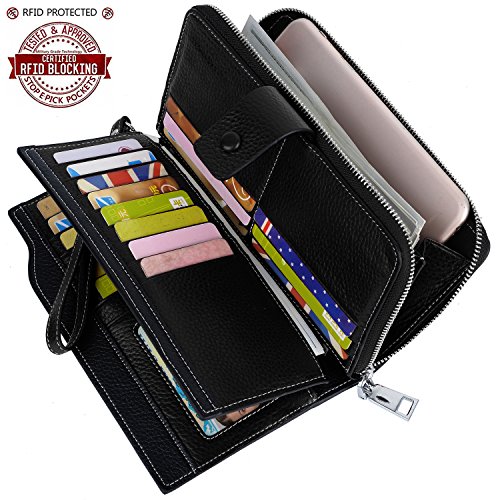 -. Title : YALUXE Women's RFID Blocking Security Large Capacity Leather Wristlet Clutch Wallet
