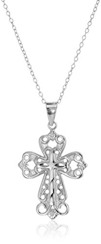 -. Title : Sterling Silver Diamond Cut Filigree Cross Pendant Necklace, 18"