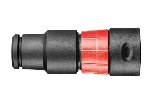 Power tool hose adapter connects to the hose with the Bosch quick click system. The rubber nozzle is sized to be used for a friction fit on nearly all Bosch dust collection attachments. The power tool hose adapter has a slider that is used to regulate air flow for optimal dust collection, specifically for applications like sanding that may require lower suction to prevent the tool from sticking to the work piece. Fits VAC090S, VAC090A, VAC140S and VAC140A dust extractors. The Bosch VX120 includes 1 Adapter.Feature