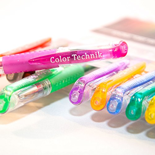 - COLOR TECHNIK GEL PENS: Will Make Your Pictures Sparkle & Shine, Have a Smooth Ink Flow For Smoother Coloring & Writing. Strong Durable Tips that produce perfect lines, Acid Free, Non Toxic.