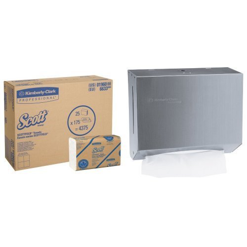 Kimberly-Clark Professional ScottFold Stainless Steel Compact Towel Dispenser With 25-Pack Scottfold M Recycled Fiber Towel Refill Bundle