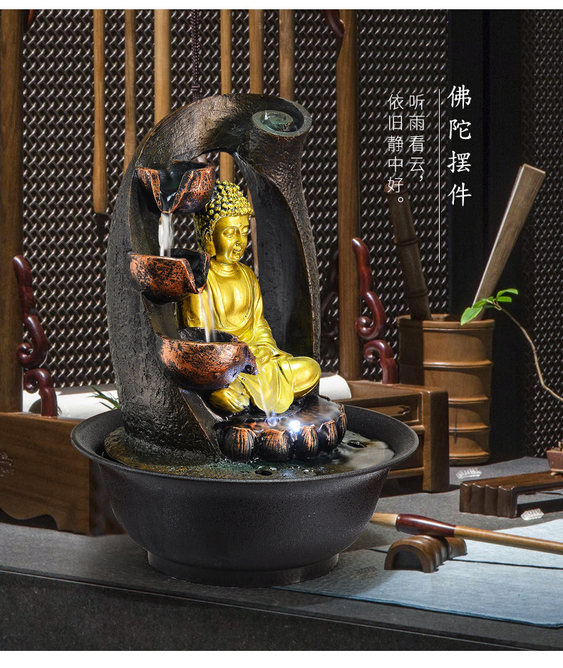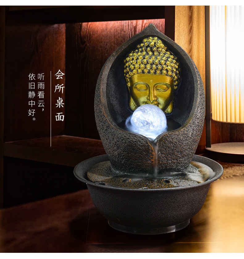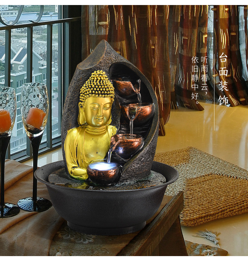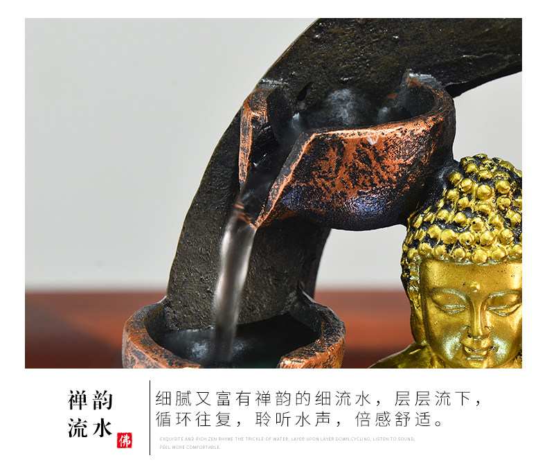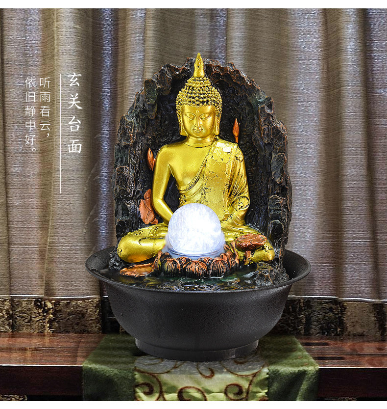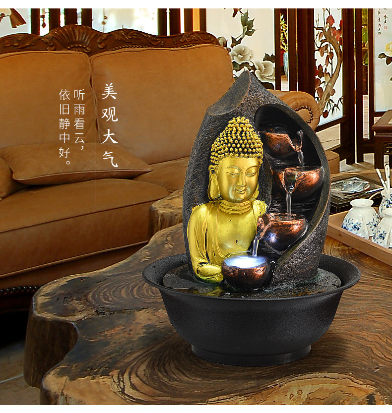 桌面招财摆件流水喷泉客厅加湿器东南亚家居装饰品佛像水景摆设