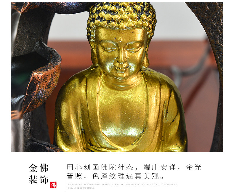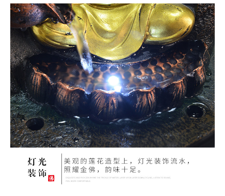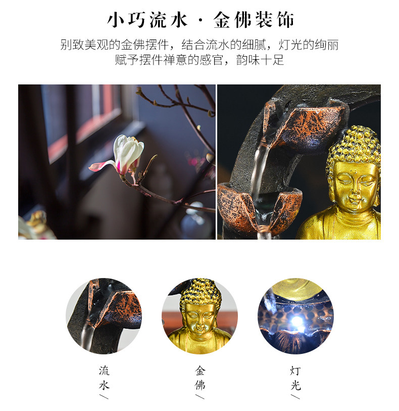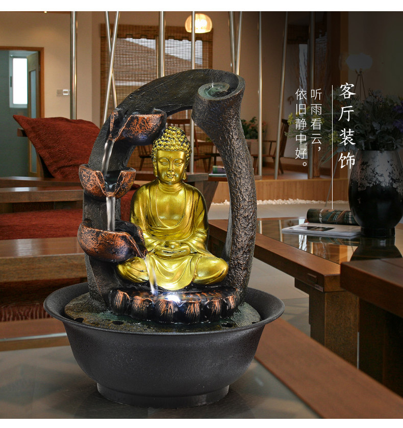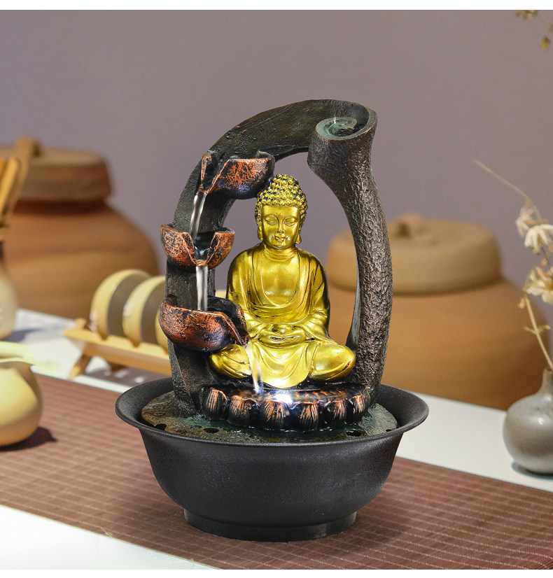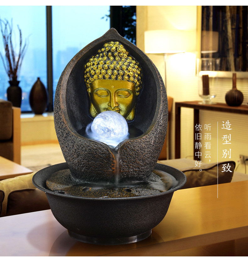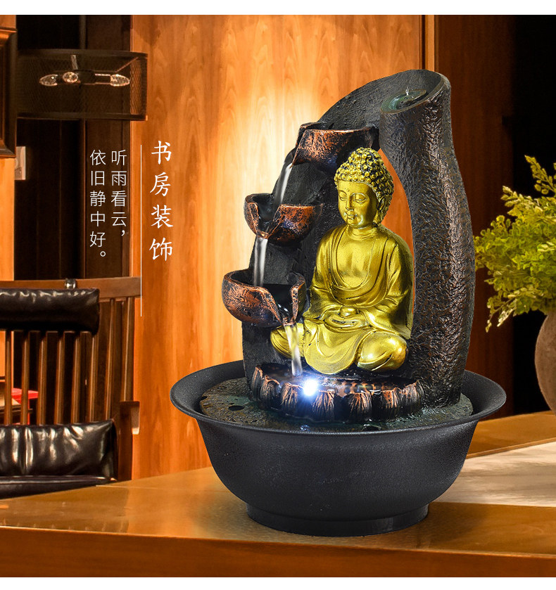 桌面招财摆件流水喷泉客厅加湿器东南亚家居装饰品佛像水景摆设