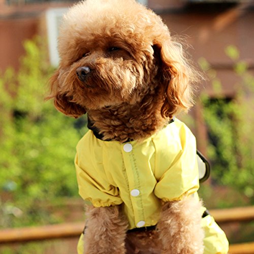 - Feature : Very cute and high quality raincoat / Made of environmental friendly material / Waterproof raincoat help to keep pets dry / Keep off wind, rain, snow, sunlight / Read size measurement carefully to choose a size for your pet