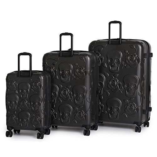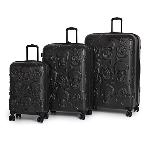 IT Luggage Duraliton Skulls and Roses 3 Piece Set, Jet Black, One Size