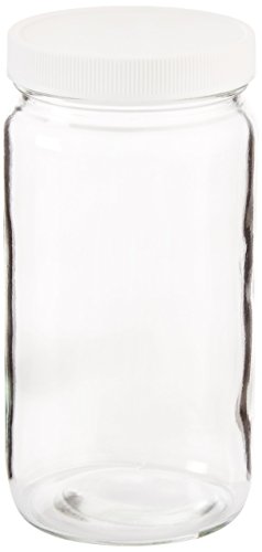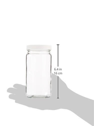 JG Finneran 9-192 Clear Borosilicate Glass Standard Tall Straight Sided Wide Mouth Jar with White Polypropylene Closure and 0.015" PTFE Lined, 70-400mm Cap Size, 500mL Capacity (Pack of 12)