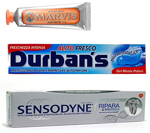 -. Title : VittleItaly: Set of 3 Toothpaste - Sensodyne, Durban's, Marvis