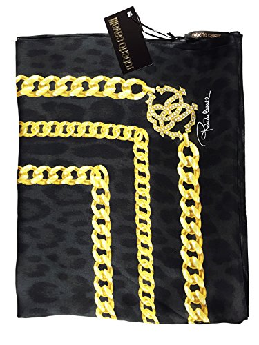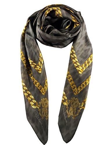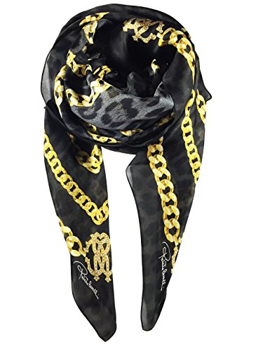 Dashing Roberto Cavalli square Womens Scarf in color Black Gold with Floral patern in beautiful 100% Silk material