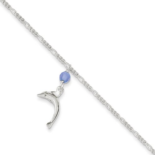 -. Title : IceCarats® Designer Jewelry Sterling Silver Blue Quartz Bead Dangling Dolphin Figaro Anklet In 10 Inch