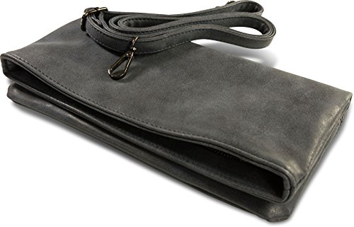 FashionCHIMP Umhangetasche fur Damen in Wildleder-Optik aus weichem und glanzendem Kunstleder mit abnehmbarem und langenverstellbaren Trageriemen