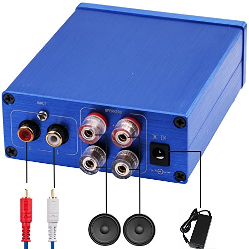 DC 8-25V 50W+50W Dual channel mini power amplifier with volume adjustment knob; rich high & low frequency; great for various bookshelves