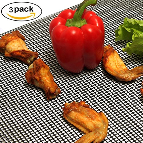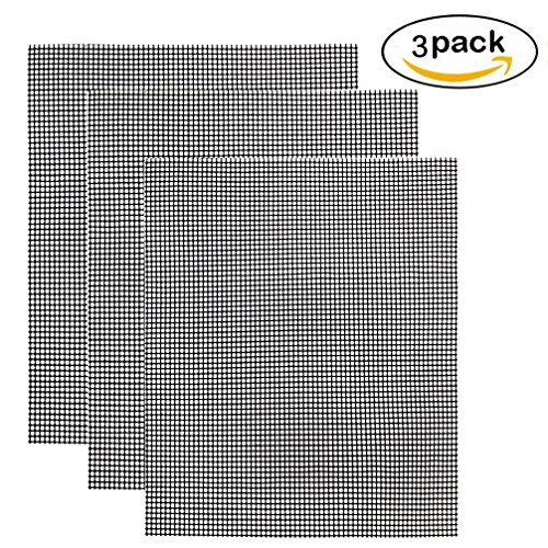 BBQ Grill Mesh Mat - Non-Stick Cooking Mats for Grilled Vegetables/Fish/Fajitas/Shrimp, Grilling Sheet Liner, Reusable Grill Accessories - Use on Gas, Charcoal, Electric Barbecue (15.7" x 13", 3 Pack)