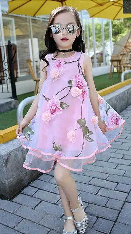 夏の女の子キッズファッション花レース膝高ボールガウンノースリーブ赤ちゃん子供服幼児パーティードレス