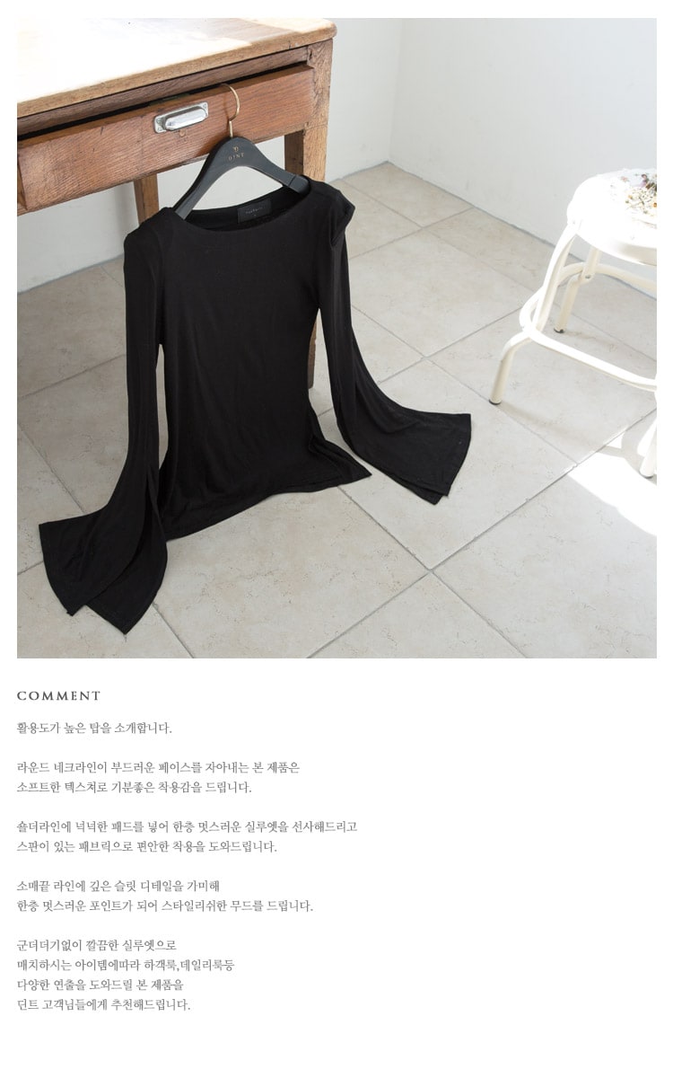 E-4195 클라스 소매슬릿 파워숄더 탑 Ivory