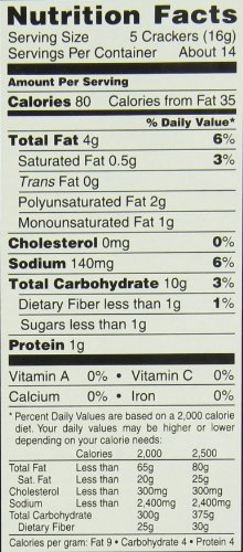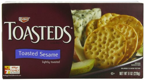 -. Feature : Pack of six, 8-ounce boxes of Keebler Sesame Toasted Crackers / Crispy crackers with real sesame seeds baked right in / Light, crisp texture with the signature Toasteds taste / Zero trans fats; low saturated fats / Perfect for parties, snacking, and as a pantry staple