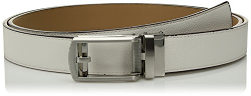 You've never worn a more comfortable belt. Genuine leather belt with brushed chrome buckle fits waist 28 -48 with micro-adjustable 32-position ratcheting track system for custom fit. Can adjust throughout the day.Feature