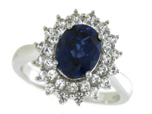 -. Title : Sterling Silver Lab Created Ceylon Sapphire and Lab Created White Sapphire Oval Shape Ring