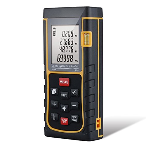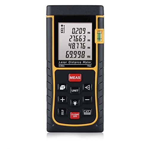 - ▶ 229FT /70M LASER MEASURE: High accuracy and wide measuring range up to 229FT /70M, ideal for measuring work including length, area, tolerance, volume and liquid level; great use in construction and industries, especially in large areas such as rooms, apartments, buildings, real estates, factories, warehouses