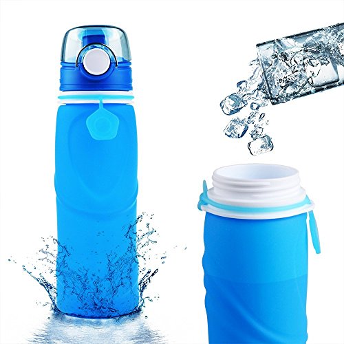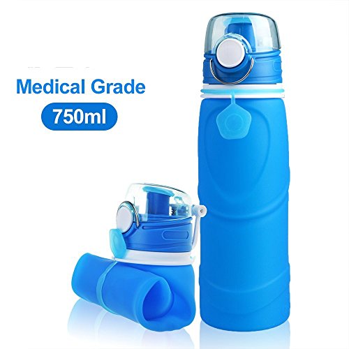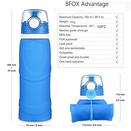 Collapsible Water Bottle BFOX 750ML/26 floz BPA Free Reusable Foldable Silicone Sports & Outdoor Water Bottles-Blue