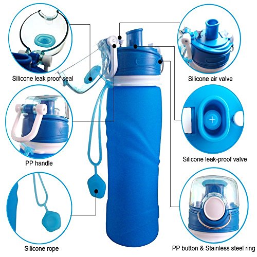 【Healthy and Safety】--This water bottle is made of medical grade (better than food grade) BPA-free silica gel and non-toxic, odorless material; approved by FDA in the U.S. Made from 100% medical-grade material.