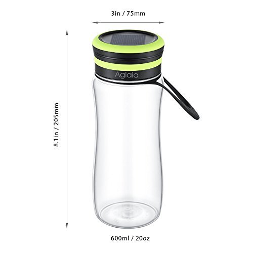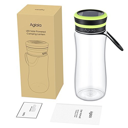 LED Water Bottle, Aglaia Bottle with Built-in LED Lantern, 3 Light Levels with USB & Solar Rechargeable, Outdoor Light with IPX6, Bottle Shade for Drinking, Storage