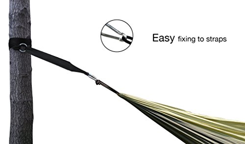 - EXTENSIVE & VERSATILE: The versatile hammock made of parachute Nylon can be used just as a hanging chair or swing. You can relax diagonally, sleep on the long side, or sit in the room to read a book. Spread on the ground, it offers space for 2 people or more, as a picnic blanket or yoga mat, with a large lying area of 110” x 54”