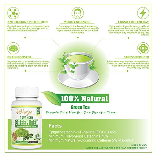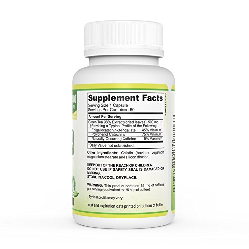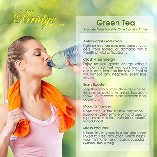 ☆ NATURAL WEIGHT LOSS: Green tea has been used for many centuries in Asia and verified by researchers that it can be use for safe, healthy weight loss. A supplement always should combine with healthy diet exercise to help your weight loss goals! ☆ POWERFUL ANTIOXIDANT: Green tea contains polyphenols catechins and EGCG (Epigallocatechin Gallate)! These substances are the powerful antioxidants that reduce the formation of free radicals in the body, protecting cells and molecules from damage. ☆ IMPROVES MOOD: Green tea extract has been shown to have a positive effect on brain health and memory, and may help protect against brain diseases. It also increases dopamine and the production of alpha waves in the brain. ☆ CONSTANT ENERGY: The caffeine in green tea extract seems to have a better effect on mental clarity and energy than the caffeine in coffee. It does not increase heartrate, anxiety, or "jittery" as coffee sometimes can. Facts: Epigallocatechin-3-P-gallate (EGCG) 45% Minimum Polyphenol Catechins 75% Minimum Naturally-Occurring Caffeine 5% Maximum Made in USA Made in a GMP Certified and FDA Inspected Facility 0 |