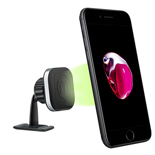 STRONG GRIP: Built-in are 4 strong magnets to support all device sizes, ranging from the iPhone SE, to larger devices such as the iPhone 7 Plus. The base of the car phone mount has a soft rubbery texture to ensure you never scratch your device!