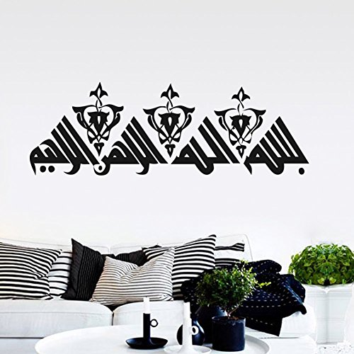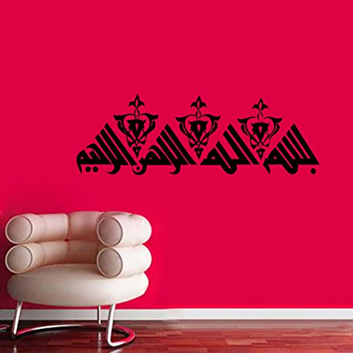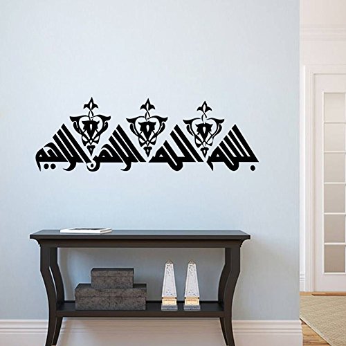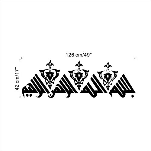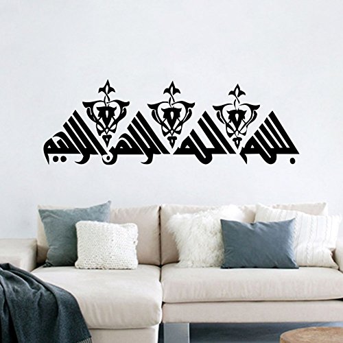 BIBITIME Triangle combination Islamic Wall Decals for Living Room Porch Study Room Black Muslim Art Mural Vinyl Sticker,49" x 17"