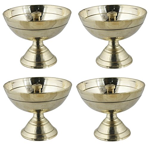 Setof Indian Brass Oil Puja Lamp - Diya Wick Night Light Candle Vintage Style
